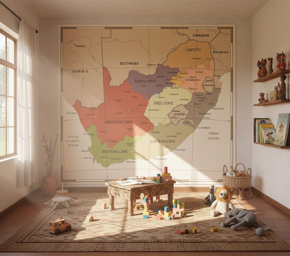 Perfect for creating a focal point in a home office, study, or executive boardroom, this mural balances educational detail with artistic elegance. Its neutral, earthy tones seamlessly complement both modern minimalist furniture and traditional leather-bound decor, making it a versatile choice for those looking to celebrate South African heritage through a lens of vintage sophistication.