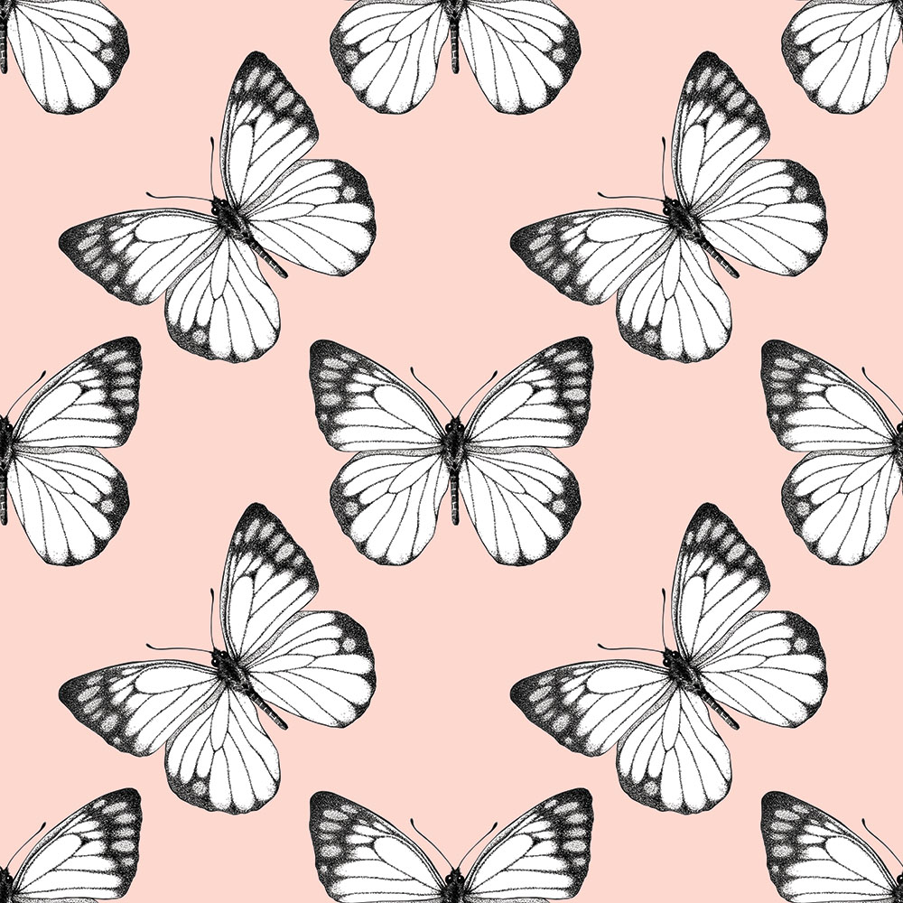 Transform your space into a playful yet sophisticated sanctuary with the Butterfly Breeze Pink Wallpaper. This striking repeating pattern showcases beautifully illustrated butterflies, rendered in crisp black and white line art that pops perfectly against the warm, pastel pink canvas.