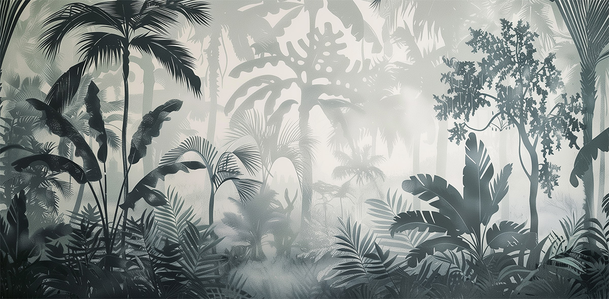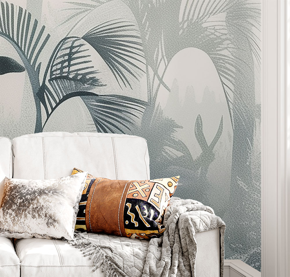 Inked Jungle Mural brings a bold yet calming tropical aesthetic to modern interiors. This removable wallpaper mural features lush palm and banana leaves illustrated in rich inky greys and muted greens, creating a depth of tone that feels both artistic and sophisticated. Printed on a canvas textured, waterproof wallpaper material, it’s ideal for living rooms, bedrooms, and creative spaces wanting a connection to nature with a refined edge. The peel and stick design makes it renter friendly and easy to install or remove without damage.