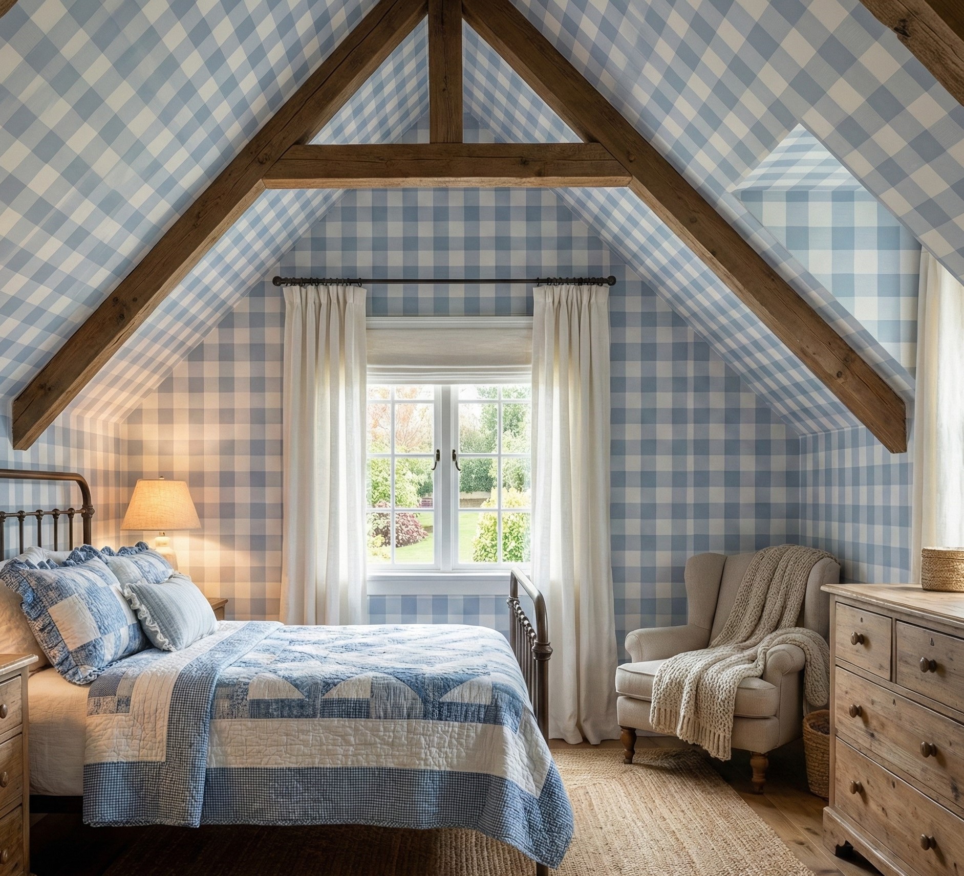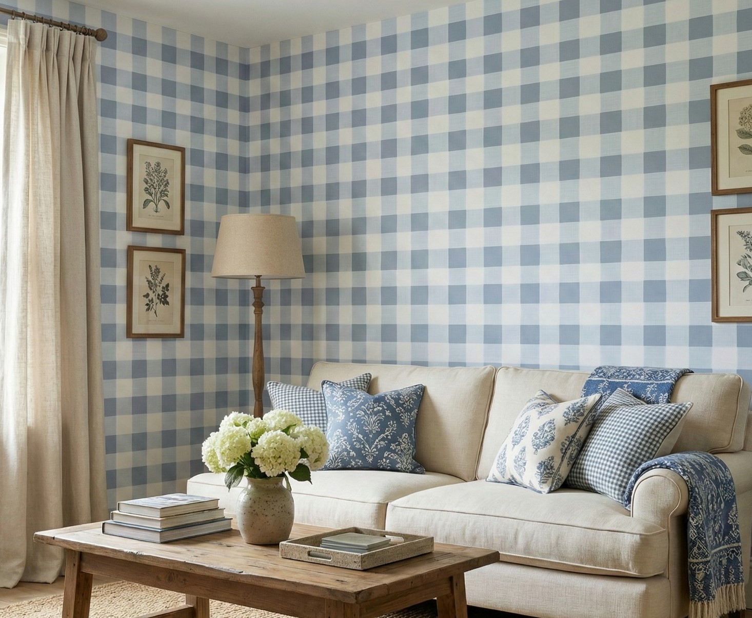 The palette pairs a soothing, muted powder blue with crisp white, creating a light and airy feel that instantly brightens a room. It is an incredibly versatile choice that transcends trends. It is the perfect backdrop for a dreamy baby nursery or a playful toddler’s room, but it works equally well in a country-style kitchen, a Hamptons-inspired bathroom, or a cozy cottage bedroom. Whether you are aiming for a rustic Farmhouse vibe or a clean Coastal look, this wallpaper offers the perfect balance of simplicity and style.